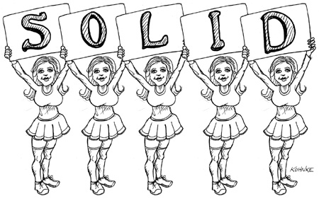 In 2004 or thereabouts, Michael Feathers sent me an email saying that if I rearranged the principles, their first words would spell the word SOLID—and thus the SOLID principles were born.